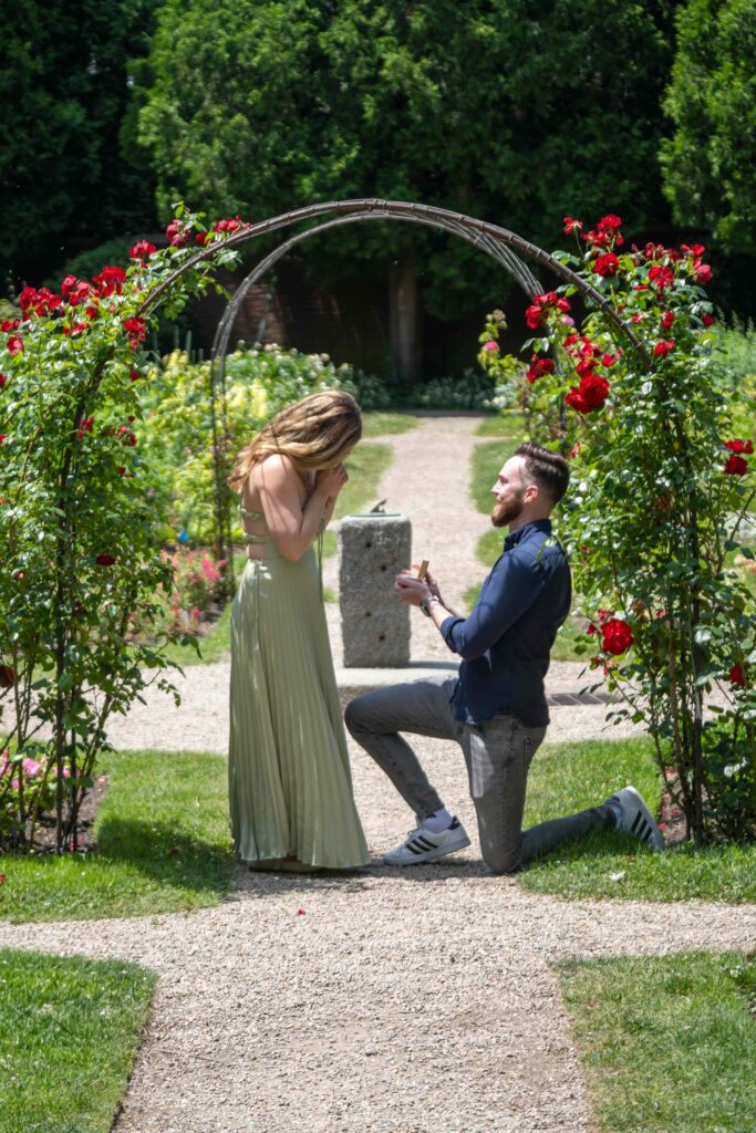 - The Moment: You have two options for how your proposal moment unfolds: we can either casually approach and ask to take a photo of you both at the location, creating a natural setup for the big moment, or we can stay at a distance and discreetly capture the proposal as it happens. Once your partner says “yes!”, we’ll come over, introduce ourselves, and give you a few moments to enjoy the excitement before continuing the session with portraits to help you share the happy news.